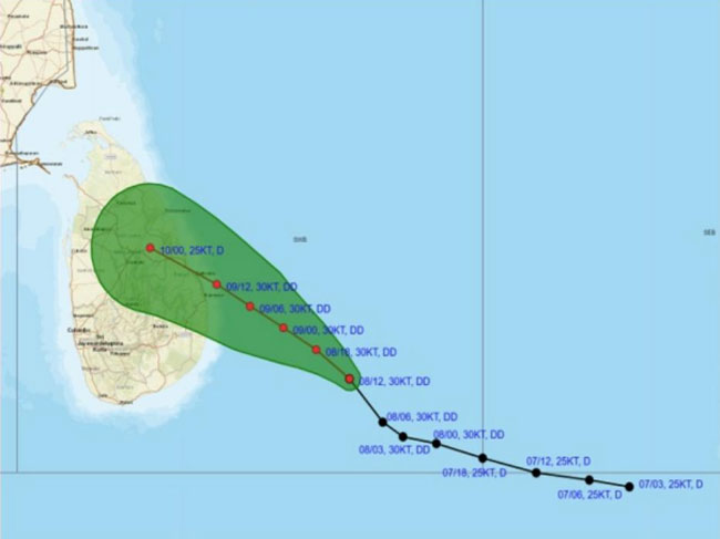 Deep depression in Bay of Bengal moves closer to Sri Lanka